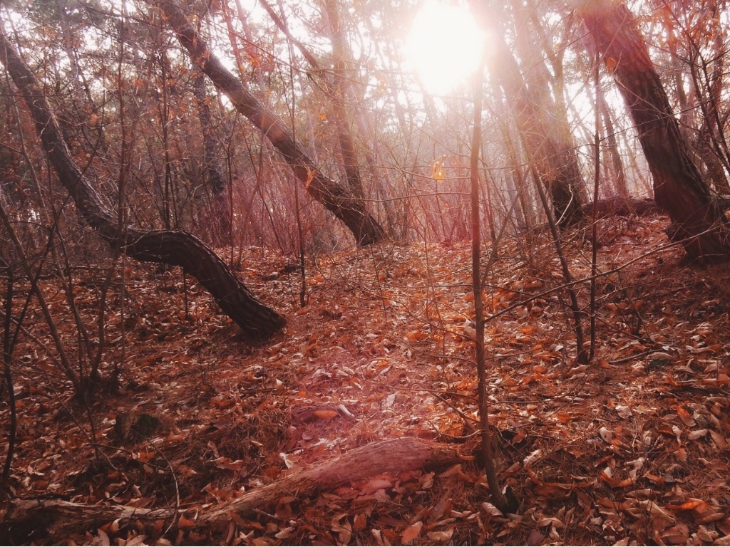 樹影疏疏,散葉淺淺,兩人沿著石塊行走間踩斷了無數褐色的松葉。也不知怎地就到了這杳無人跡的地方,枯枝落葉灑落滿地,斜光透著頑強的葉襯了斑駁。屬於自然的氣息混雜著些許冷冽鑽進鼻腔,尚不足以醒神。蕭颯風聲間,前方的他伸出手,在空中劃了個弧,落單的葉子便信手拈來。